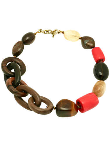 Short necklace of kamagong wood links mixed with gemstones